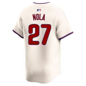 This Aaron Nola Philadelphia Phillies Cream Alternate Limited Jersey – All Stitched is an essential piece of gear for any Philadelphia Phillies fan looking to highlight their favorite jersey and player. The Aaron Nola Philadelphia Phillies Cream Alternate Limited Jersey and team details provide a kickoff-ready look that elevates your excitement for game day. Made with comfort in mind, this Philadelphia Phillies jersey delivers a standard, lightweight fit and features breathable mesh side panels for added ventilation.
