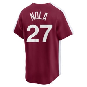 This Aaron Nola Philadelphia Phillies Red Cooperstown Limited Jersey – All Stitched is an essential piece of gear for any Philadelphia Phillies fan looking to highlight their favorite jersey and player. The Aaron Nola Philadelphia Phillies Red Cooperstown Limited Jersey and team details provide a kickoff-ready look that elevates your excitement for game day. Made with comfort in mind, this Philadelphia Phillies jersey delivers a standard, lightweight fit and features breathable mesh side panels for added ventilation.