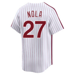 This Aaron Nola Philadelphia Phillies White Cooperstown Limited Jersey – All Stitched is an essential piece of gear for any Philadelphia Phillies fan looking to highlight their favorite jersey and player. The Aaron Nola Philadelphia Phillies White Cooperstown Limited Jersey and team details provide a kickoff-ready look that elevates your excitement for game day. Made with comfort in mind, this Philadelphia Phillies jersey delivers a standard, lightweight fit and features breathable mesh side panels for added ventilation.