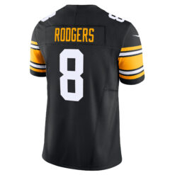 Suit up like a legend in the Aaron Rodgers Pittsburgh Steelers Black Alternate Vapor F.U.S.E Limited Jersey – All Stitched. This premium jersey features fully stitched name, number, and details for a high-quality, stunning look. Designed in the Steelers’ classic black and gold, it’s perfect for game day or everyday fan wear. Whether you’re cheering from the stands or watching from home, show your Pittsburgh pride and rep Rodgers in style. A must-have for any true Steelers fan!