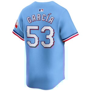 This Adolis Garcia Texas Rangers Light Blue Alternate Limited Jersey – All Stitched is an essential piece of gear for any Texas Rangers fan looking to highlight their favorite jersey and player. The Adolis Garcia Texas Rangers Light Blue Alternate Limited Jersey and team details provide a kickoff-ready look that elevates your excitement for game day. Made with comfort in mind, this Texas Rangers jersey delivers a standard, lightweight fit and features breathable mesh side panels for added ventilation.