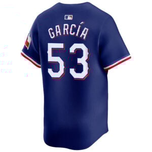 This Adolis Garcia Texas Rangers Royal Blue Alternate Limited Jersey – All Stitched is an essential piece of gear for any Texas Rangers fan looking to highlight their favorite jersey and player. The Adolis Garcia Texas Rangers Royal Blue Alternate Limited Jersey and team details provide a kickoff-ready look that elevates your excitement for game day. Made with comfort in mind, this Texas Rangers jersey delivers a standard, lightweight fit and features breathable mesh side panels for added ventilation.