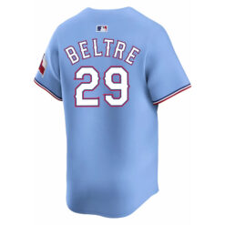 This Adrian Beltre Texas Rangers Light Blue Alternate Limited Jersey – All Stitched is an essential piece of gear for any Texas Rangers fan looking to highlight their favorite jersey and player. The Adrian Beltre Texas Rangers Light Blue Alternate Limited Jersey and team details provide a kickoff-ready look that elevates your excitement for game day. Made with comfort in mind, this Texas Rangers jersey delivers a standard, lightweight fit and features breathable mesh side panels for added ventilation.