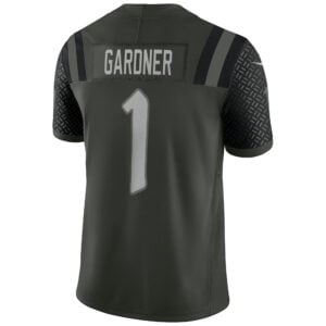 Represent lockdown defense with the Ahmad Sauce Gardner New York Jets Gotham Green 2025 Rivalries Collection Limited Jersey. This Limited edition offers modern upgrades such as standard fit, Dri-FIT technology, twill name and numbers applied with heat-transfer, and a chainmaille mesh grill collar. Enhanced with stitched name, number, embroidered logos, and patch, this Rivalries Collection jersey celebrates Gotham pride and New York’s fierce football heritage.