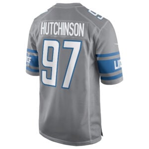 This Aidan Hutchinson Detroit Lions Grey Alternate Game Jersey – All Stitched is an essential piece of gear for any Detroit Lions fan looking to highlight their favorite jersey and player. The Aidan Hutchinson Detroit Lions Grey Alternate Game Jersey and team details provide a kickoff-ready look that elevates your excitement for game day. Made with comfort in mind, this Aidan Hutchinson Detroit Lions jersey delivers a standard, lightweight fit and features breathable mesh side panels for added ventilation.