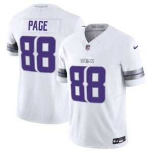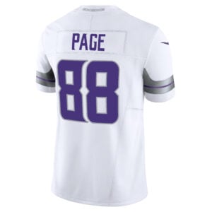 The Alan Page Minnesota Vikings White Winter Classic Warrior Vapor F.U.S.E Limited Jersey – All Stitched captures the strength of Minnesota in cold-weather battles. Every stitch, from Page’s embroidered number to the Vikings logos, reflects both team history and state resilience.
