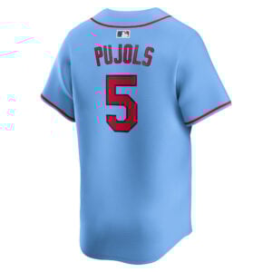This Albert Pujols St. Louis Cardinals Light Blue Alternate Limited Jersey – All Stitched is an essential piece of gear for any St. Louis Cardinals fan looking to highlight their favorite jersey and player. The Albert Pujols St. Louis Cardinals Light Blue Alternate Limited Jersey and team details provide a kickoff-ready look that elevates your excitement for game day. Made with comfort in mind, this St. Louis Cardinals jersey delivers a standard, lightweight fit and features breathable mesh side panels for added ventilation.
