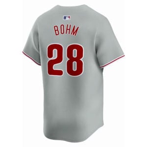 This Alec Bohm Philadelphia Phillies Grey Road Limited Jersey – All Stitched is an essential piece of gear for any Philadelphia Phillies fan looking to highlight their favorite jersey and player. The Alec Bohm Philadelphia Phillies Grey Road Limited Jersey and team details provide a kickoff-ready look that elevates your excitement for game day. Made with comfort in mind, this Philadelphia Phillies jersey delivers a standard, lightweight fit and features breathable mesh side panels for added ventilation.