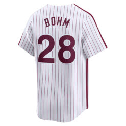 This Alec Bohm Philadelphia Phillies White Cooperstown Limited Jersey – All Stitched is an essential piece of gear for any Philadelphia Phillies fan looking to highlight their favorite jersey and player. The Alec Bohm Philadelphia Phillies White Cooperstown Limited Jersey and team details provide a kickoff-ready look that elevates your excitement for game day. Made with comfort in mind, this Philadelphia Phillies jersey delivers a standard, lightweight fit and features breathable mesh side panels for added ventilation.