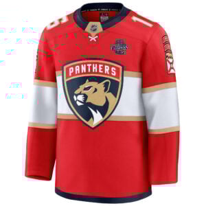Celebrate unmatched excellence with the Aleksander Barkov Florida Panthers Back To Back Championship Red Home Premium Jersey. The Florida Panthers have cemented their legacy with consecutive titles, and this jersey proudly honors that dominance. Dressed in the team’s iconic Florida red, this piece showcases stitched name, number, logo, and championship patch that bring Barkov’s leadership and the Panthers’ state pride to life. Every embroidered detail symbolizes precision and passion — from the roaring Panthers crest to the Cup patch marking this historic run. Perfect for home games, display, or everyday wear, it captures the unstoppable energy of Florida hockey and celebrates Barkov’s essential role in leading the Sunshine State’s champions to back-to-back glory.