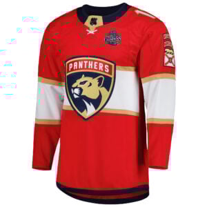 Show your pride responsibly with the Aleksander Barkov Florida Panthers Back To Back Championship Red Home Primegreen Jersey. Made from Primegreen materials that use high-performance recycled fibers, this design celebrates both the Panthers’ triumph and environmental care. Every element — Barkov’s stitched name and number, the Panthers logo, and the championship patch — is crafted with precision for lasting quality. The vivid red color pays homage to Florida’s fiery energy, while the embroidery reflects victory earned through strength and unity. Flaunt your support for Barkov and the state’s powerhouse team with sustainable style and championship class.
