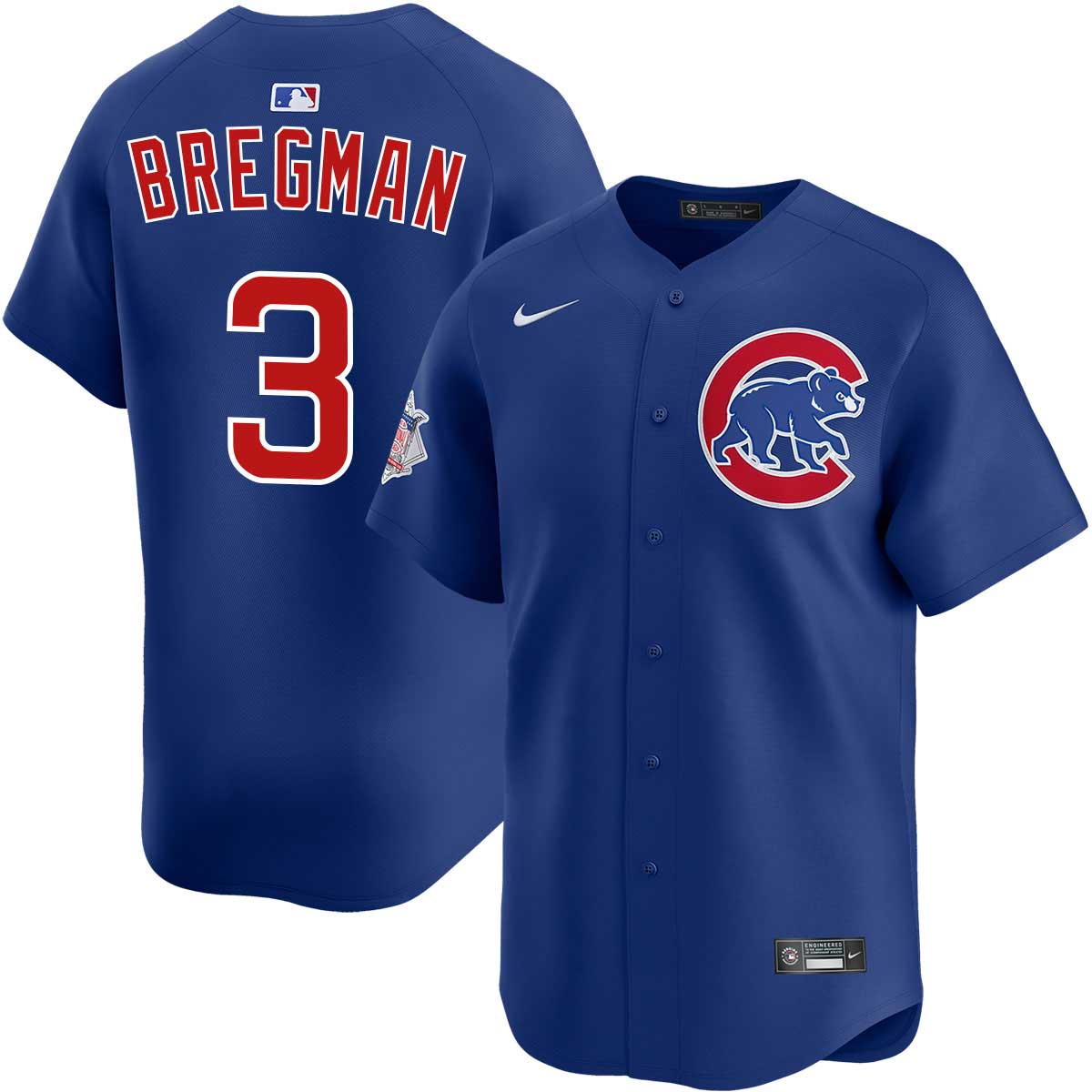Show bold Chicago Cubs pride with this Royal Blue Alternate Limited Jersey featuring Alex Bregman. As Bregman joins the Cubs, this vibrant blue design reflects the team’s modern edge while honoring Chicago’s deep baseball roots. The Cubs short name is displayed prominently, representing city passion and unity. The player name and number are fully stitched for long-lasting wear, complemented by an embroidered Cubs logo that adds sharp detail. Stitched patches complete the design with layered texture. Built for comfort and standout style, oversized options are available for fans who prefer a looser fit.