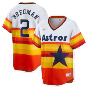 This Alex Bregman Houston Astros White Orange Cooperstown Collection Jersey – All Stitched is an essential piece of gear for any Alex Bregman Houston Astros fan looking to highlight their favorite jersey and player. The Alex Bregman Houston Astros White Orange Cooperstown Collection Jersey and team details provide a kickoff-ready look that elevates your excitement for game day. Made with comfort in mind, this Alex Bregman Houston Astros jersey delivers a standard, lightweight fit and features breathable mesh side panels for added ventilation.