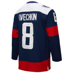 Channel your inner sniper with the Alex Ovechkin Washington Capitals Navy Power Play Jersey. Designed to showcase strength and skill, this deep navy jersey pays homage to Ovi’s legendary power play dominance. Every logo, patch, name, and number is stitched or embroidered, offering a bold, long-lasting finish. With its sleek look and rich Washington pride, this jersey is perfect for fans who want to represent their captain’s elite game-breaking talent.