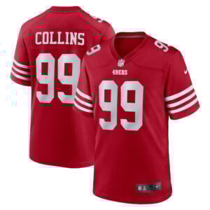 This Alfred Collins San Francisco 49ers Scarlet Home Game Jersey – All Stitched is an essential piece of gear for any San Francisco 49ers fan looking to highlight their favorite jersey and player. The Alfred Collins San Francisco 49ers Scarlet Home Game Jersey and team details provide a kickoff-ready look that elevates your excitement for game day. Made with comfort in mind, this Alfred Collins San Francisco 49ers jersey delivers a standard, lightweight fit and features breathable mesh side panels for added ventilation.