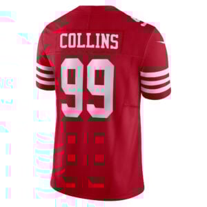 This Alfred Collins San Francisco 49ers Scarlet Home Vapor F.U.S.E Limited Jersey – All Stitched is an essential piece of gear for any San Francisco 49ers fan looking to highlight their favorite jersey and player. The Alfred Collins San Francisco 49ers Scarlet Home Vapor F.U.S.E Limited Jersey and team details provide a kickoff-ready look that elevates your excitement for game day. Made with comfort in mind, this Alfred Collins San Francisco 49ers jersey delivers a standard, lightweight fit and features breathable mesh side panels for added ventilation.