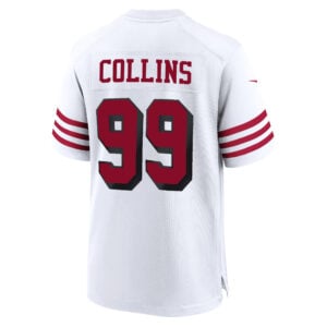 This Alfred Collins San Francisco 49ers White Alternate Game Jersey – All Stitched is an essential piece of gear for any San Francisco 49ers fan looking to highlight their favorite jersey and player. The Alfred Collins San Francisco 49ers White Alternate Game Jersey and team details provide a kickoff-ready look that elevates your excitement for game day. Made with comfort in mind, this Alfred Collins San Francisco 49ers jersey delivers a standard, lightweight fit and features breathable mesh side panels for added ventilation.