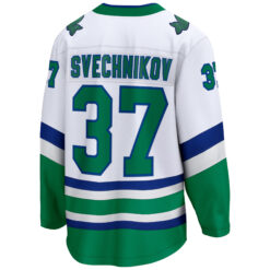 Honor Hurricanes history with the Andrei Svechnikov Carolina Hurricanes White Throwback Jersey – All Stitched. Crafted with stitched name and number, embroidered logos, and nostalgic patchwork, this jersey connects North Carolina fans to their team’s past and present.