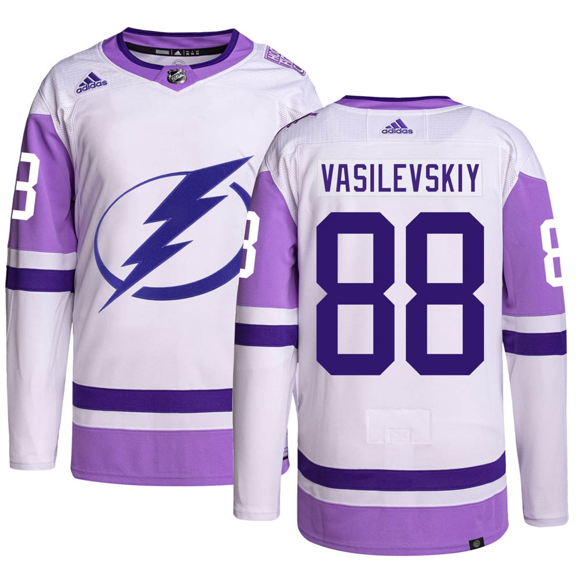 Stand tall for a cause and the planet with the Andrei Vasilevski White Hockey Fights Cancer Primegreen Jersey. Combining eco-friendly Primegreen materials with stitched name, number, logo, and patch, this jersey celebrates both compassion and sustainability. The Tampa Bay Lightning design reflects unity and state pride, reminding every fan of the strength found in support and teamwork. Perfect for game nights or awareness events, this piece shines with heart and purpose.