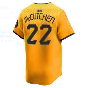 This Andrew McCutchen Pittsburgh Pirates Gold City Connect Limited Jersey – All Stitched is an essential piece of gear for any Pittsburgh Pirates fan looking to highlight their favorite jersey and player. The Andrew McCutchen Pittsburgh Pirates Gold City Connect Limited Jersey and team details provide a kickoff-ready look that elevates your excitement for game day. Made with comfort in mind, this Pittsburgh Pirates jersey delivers a standard, lightweight fit and features breathable mesh side panels for added ventilation.