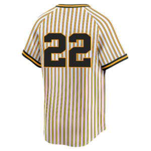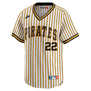 This Andrew McCutchen Pittsburgh Pirates Pinstripe 1967-86 Throwback Jersey – All Stitched is an essential piece of gear for any Pittsburgh Pirates fan looking to highlight their favorite jersey and player. The Andrew McCutchen Pittsburgh Pirates Pinstripe 1967-86 Throwback Jersey and team details provide a kickoff-ready look that elevates your excitement for game day. Made with comfort in mind, this Pittsburgh Pirates jersey delivers a standard, lightweight fit and features breathable mesh side panels for added ventilation.