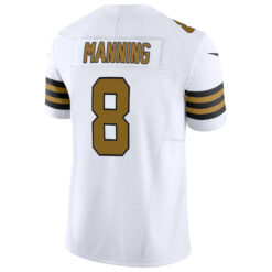 This Archie Manning New Orleans Saints White Alternate Vapor F.U.S.E Limited Jersey – All Stitched is an essential piece of gear for any New Orleans Saints fan looking to highlight their favorite jersey and player. The Archie Manning New Orleans Saints White Alternate Vapor F.U.S.E Limited Jersey and team details provide a kickoff-ready look that elevates your excitement for game day. Made with comfort in mind, this Archie Manning New Orleans Saints jersey delivers a standard, lightweight fit and features breathable mesh side panels for added ventilation.