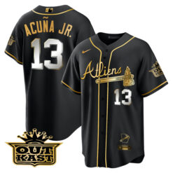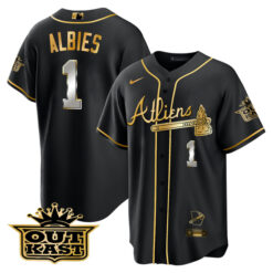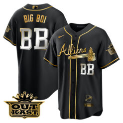 As the ultimate Atlanta Braves fan, you deserve the same look your favorite players sport out on the field. This Atlanta Braves Outkast ATLiens Black Gold V1 Jersey – All Stitched jersey brings the team’s design to your wardrobe for a consistently spirited look on game day. The polyester material and slick Atlanta Braves graphics are just what any fan needs to look and feel their best.