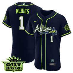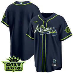 As the ultimate Atlanta Braves fan, you deserve the same look your favorite players sport out on the field. This Atlanta Braves Outkast ATLiens Jersey – All Stitched jersey brings the team’s design to your wardrobe for a consistently spirited look on game day. The polyester material and slick Atlanta Braves graphics are just what any fan needs to look and feel their best.