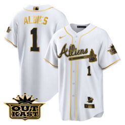 As the ultimate Atlanta Braves fan, you deserve the same look your favorite players sport out on the field. This Atlanta Braves Outkast ATLiens White Gold Jersey – All Stitched jersey brings the team’s design to your wardrobe for a consistently spirited look on game day. The polyester material and slick Atlanta Braves graphics are just what any fan needs to look and feel their best.