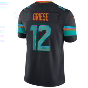 Showcase a unique mix of style and tradition with the Bob Griese Miami Dolphins Pitch Blue 2025 Rivalries Collection Limited Jersey – All Stitched. The 2025 Rivalries Collection is a new uniform and fan gear program, created to celebrate storied rivalries and unite fan communities. The collection features unique, community-inspired designs for select teams, which are unveiled during a dedicated home game against a division rival. This limited version also comes featuring a “standard fit,” Dri-FIT technology, heat-transferred twill name and numbers, and a chainmaille mesh grill at the collar. Alongside stitched player details, embroidered patches, and Dolphins logos, it’s a perfect fusion of innovation and Florida loyalty.