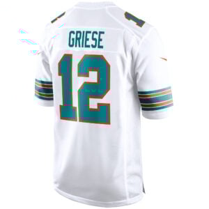 The Bob Griese Miami Dolphins White Alternate Game Jersey – All Stitched adds a clean, distinctive option for devoted Dolphins supporters. Whether cheering in Miami or repping Florida pride nationwide, this jersey stands out with its stitched name and numbers, embroidered Dolphins logos, and patchwork that ensure long-lasting quality in every detail.