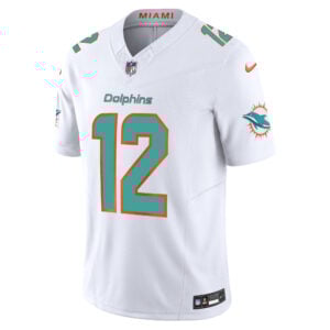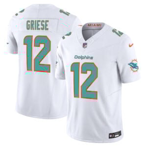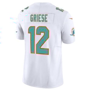 The Bob Griese Miami Dolphins White Road Vapor F.U.S.E Limited Jersey – All Stitched blends advanced comfort with timeless Dolphins tradition. Built featuring a “standard fit,” Dri-FIT technology, heat-transferred twill name and numbers, and a chainmaille mesh grill at the collar, it offers fans a polished way to represent Miami on the road. Stitched detailing on the name, number, logo, and patches ensure long-lasting quality.