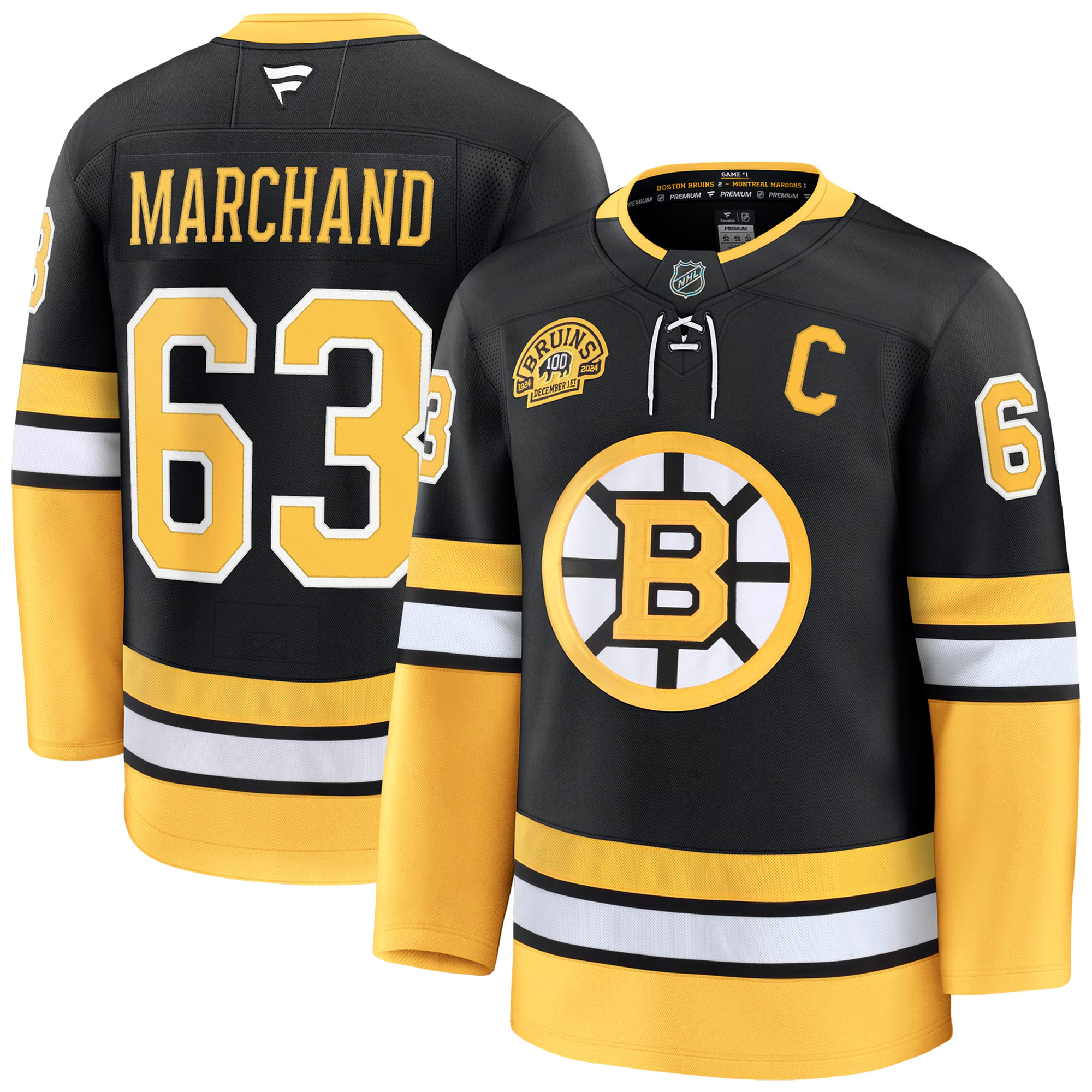 Brad Marchand Boston Bruins Black Alternate 100th Anniversary Premium Jersey – All Stitched