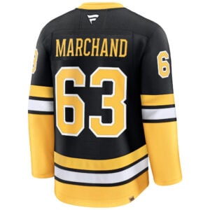 Celebrate a century of Boston Bruins greatness with the Black Alternate 100th Anniversary Premium Jersey. This limited edition honors 100 years of iconic hockey history and Boston pride. Featuring stitched name, number, embroidered logos, and a commemorative anniversary patch, it perfectly balances tradition with premium craftsmanship. Brad Marchand’s name on the back adds a finishing touch to a jersey that reflects both team heritage and Massachusetts excellence—a timeless addition for any loyal Bruins fan.