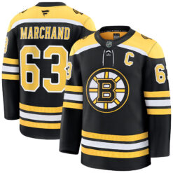 Show your loyalty to the Boston Bruins with this bold Black Home Premium Jersey celebrating Brad Marchand. Designed to capture the fierce energy and pride of Massachusetts, this jersey embodies the legacy of the Bruins and their passionate fan base. Every element—from the stitched name and number to the embroidered team logo and shoulder patches—is meticulously crafted for a premium finish. The black and gold colorway reflects Boston’s fighting spirit and relentless determination, making it a must-have for every fan who bleeds black and gold. Whether you’re at TD Garden or watching from home, this jersey keeps your Bruins pride front and center.