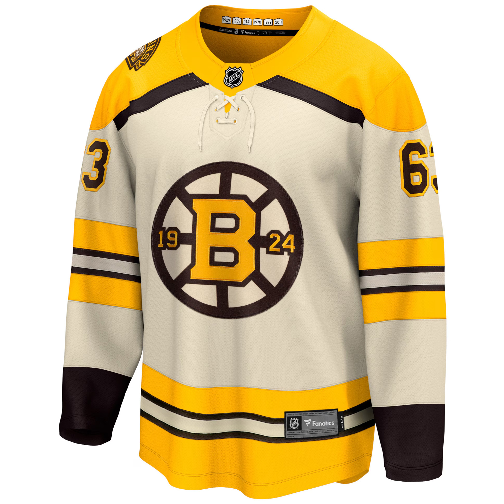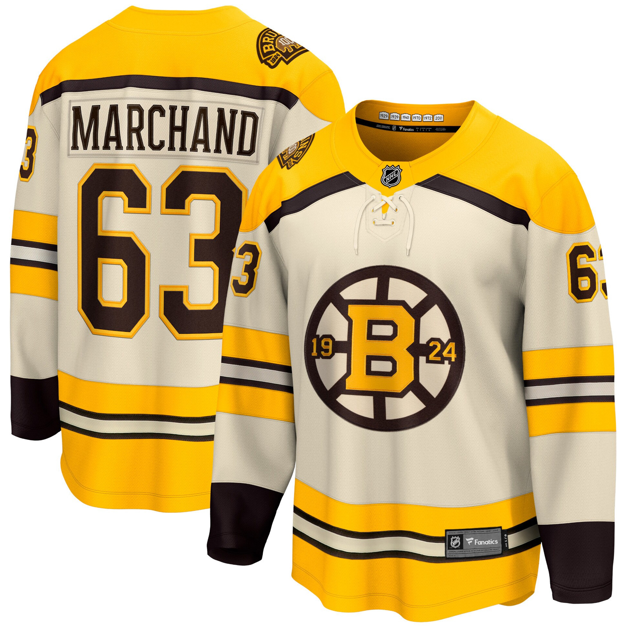 Commemorate a century of Bruins excellence with the Cream Alternate 100th Anniversary Jersey. The soft cream tones and stitched name, number, embroidered logo, and exclusive anniversary patch create a look steeped in history. Brad Marchand’s name graces the back, paying tribute to both the team’s present stars and legendary past. This jersey embodies Boston’s heritage, uniting a hundred years of Massachusetts hockey pride in a timeless design.
