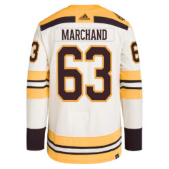 Honor the Boston Bruins’ century of dominance with the Cream Centennial Alternate Primegreen Jersey. Crafted from eco-friendly Primegreen materials, it pairs modern sustainability with vintage style. Brad Marchand’s name and number are stitched for durability, while embroidered logos and centennial patches celebrate 100 years of Bruins hockey. Representing both Boston’s deep hockey heritage and Massachusetts state pride, this jersey is a perfect balance of tradition and innovation.