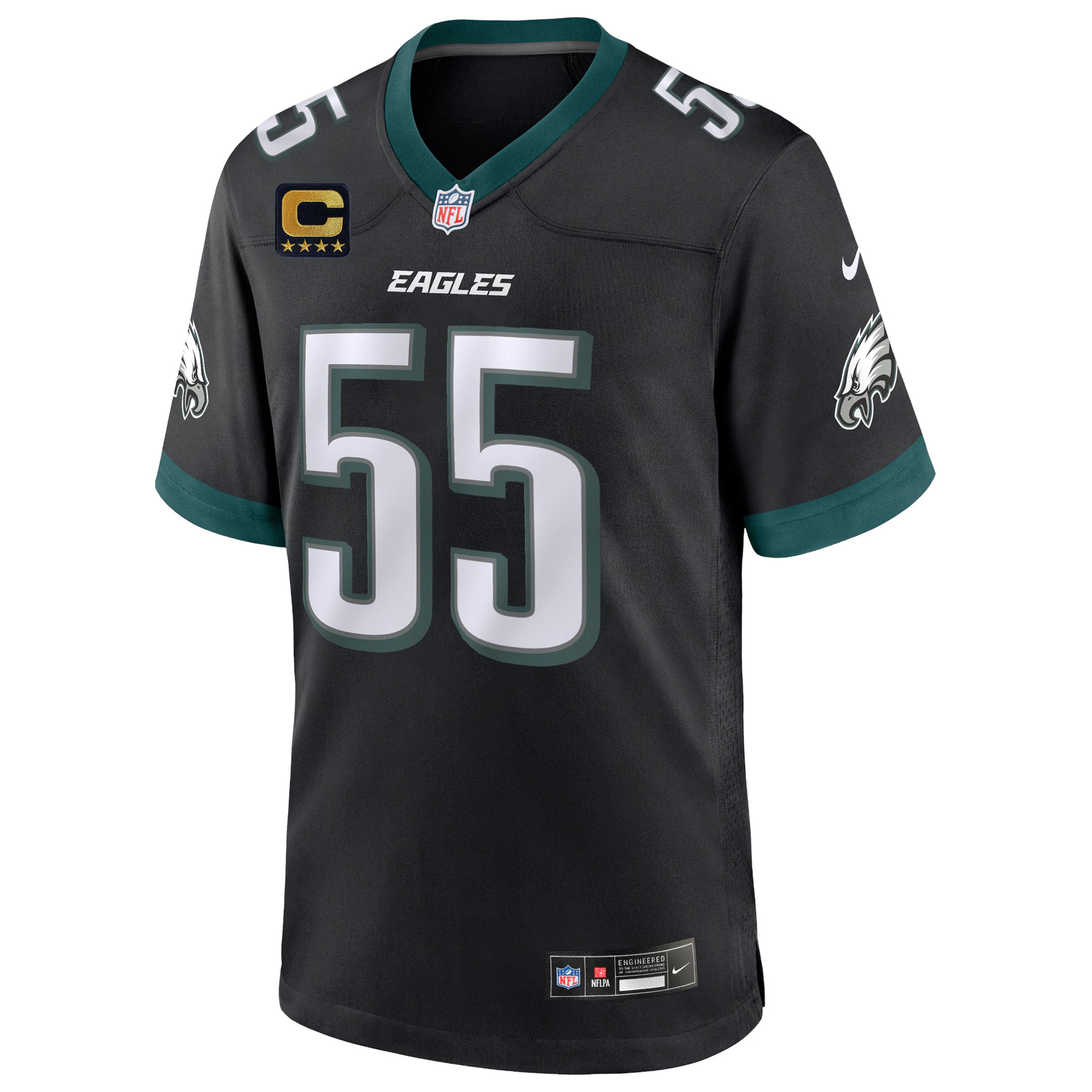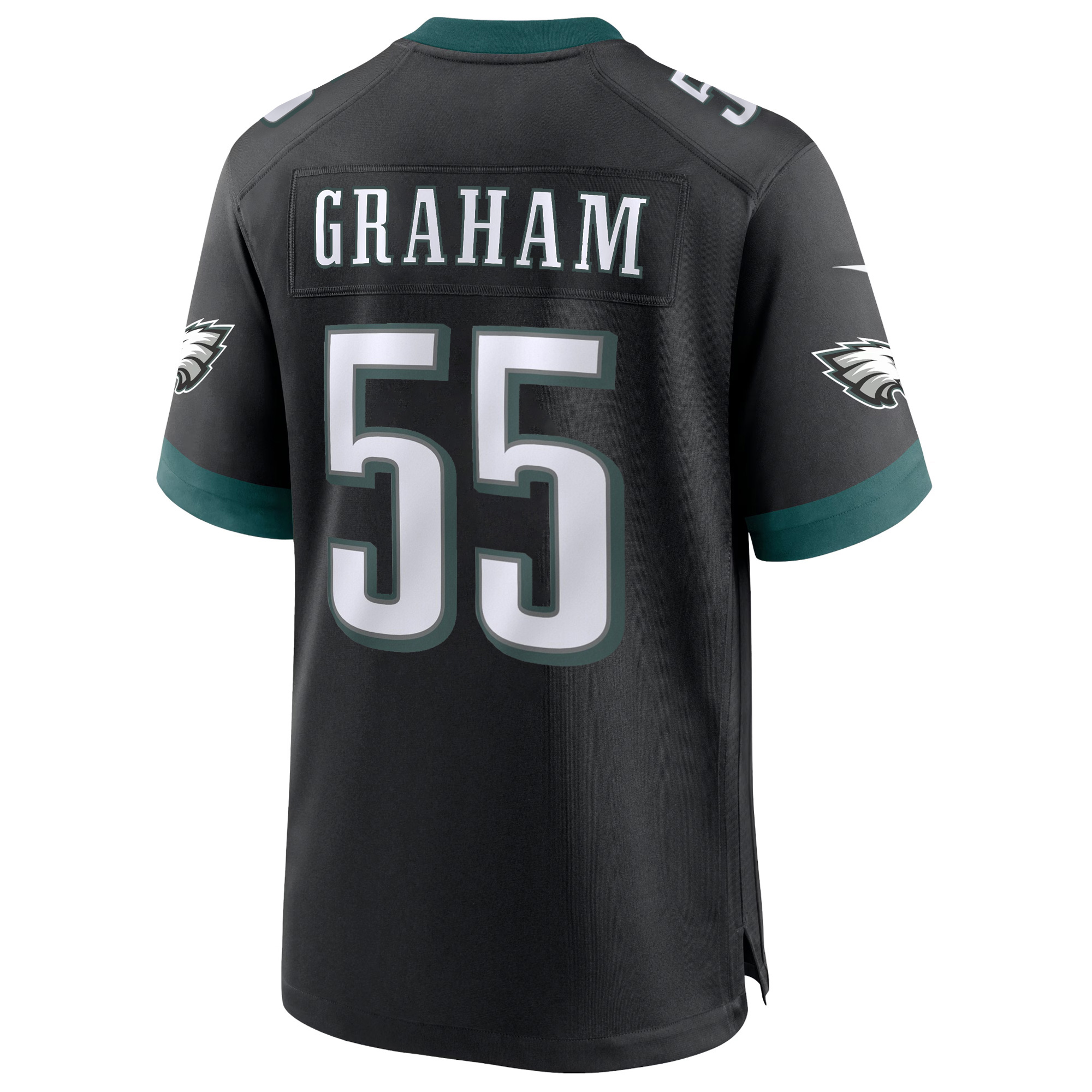 Honor the Philadelphia Eagles and the gritty PHI pride with this Brandon Graham Black Game Jersey. Designed with all stitched elements—name, number, Captain patch, and the team logo—this jersey provides a premium finish fans appreciate. The all-black colorway offers a sleek and powerful look representing the energy of Pennsylvania football. Whether you’re cheering at the stadium or styling it casually, this jersey delivers bold personality and lasting comfort. Men’s oversized sizes 5XL, 6XL, and 7XL are also available for those who prefer a roomier fit.