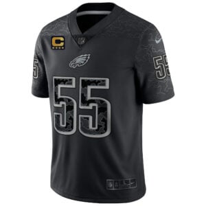 Embrace bold PHI pride with this Brandon Graham Black RFLCTV Limited Jersey for the Philadelphia Eagles. Designed with stitched name and number, reflective detailing, Captain patch, and embroidered logos, this jersey brings a modern, eye-catching twist to Pennsylvania football style. The reflective elements elevate visibility and uniqueness, making it a standout piece for nighttime wear or special events. Fans seeking comfort and size variety can also choose oversized men’s options in 5XL, 6XL, and 7XL.