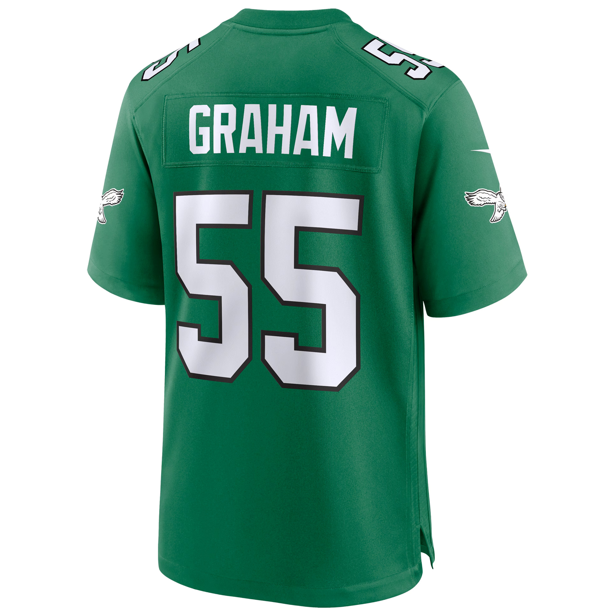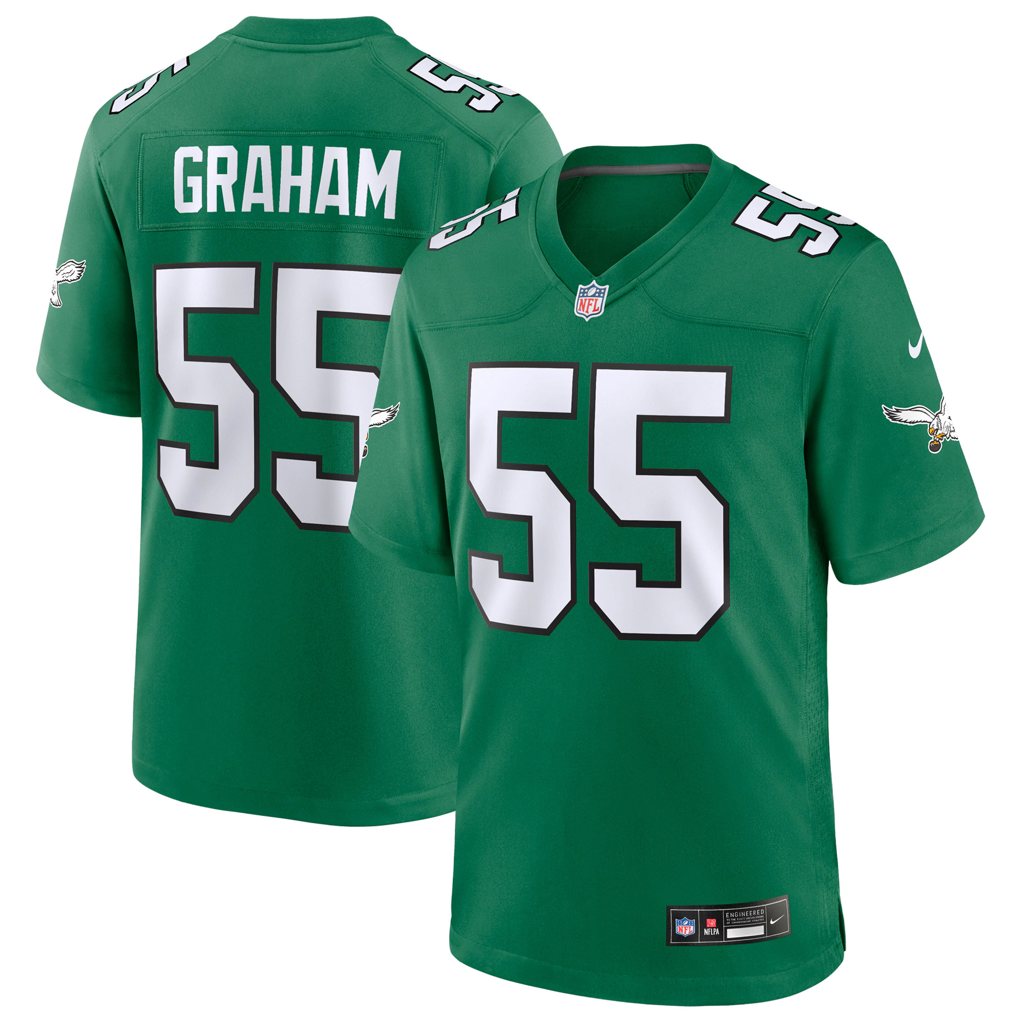 Celebrate classic Philadelphia Eagles heritage with this Brandon Graham Kelly Green Throwback Game Jersey. Featuring the beloved retro colorway that brings back the glory of the “PHI” legacy, this jersey highlights the team’s proud Pennsylvania roots. Every detail—from the stitched name and number to the embroidered logos and patches—adds depth and character to this nostalgic piece. Whether you’re honoring the past or cheering the present, this jersey delivers standout style and comfort. Oversized men’s 5XL, 6XL, and 7XL options are available for fans who prefer a roomier fit.