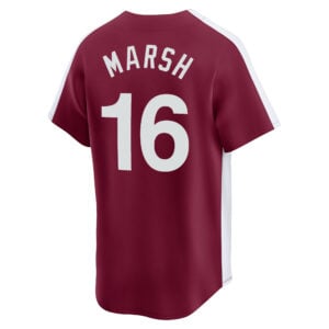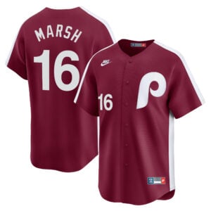 This Brandon Marsh Philadelphia Phillies Red Cooperstown Limited Jersey – All Stitched is an essential piece of gear for any Philadelphia Phillies fan looking to highlight their favorite jersey and player. The Brandon Marsh Philadelphia Phillies Red Cooperstown Limited Jersey and team details provide a kickoff-ready look that elevates your excitement for game day. Made with comfort in mind, this Philadelphia Phillies jersey delivers a standard, lightweight fit and features breathable mesh side panels for added ventilation.