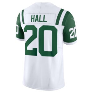 This Breece Hall New York Jets White Classic Alternate Vapor F.U.S.E Limited Jersey – All Stitched is an essential piece of gear for any New York Jets fan looking to highlight their favorite jersey and player. The Breece Hall New York Jets White Classic Alternate Vapor F.U.S.E Limited Jersey and team details provide a kickoff-ready look that elevates your excitement for game day. Made with comfort in mind, this Breece Hall New York Jets jersey delivers a standard, lightweight fit and features breathable mesh side panels for added ventilation.