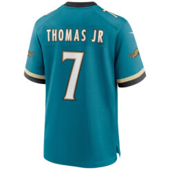 Bring history back to life with the teal Prowler throwback jersey for Brian Thomas Jr. Fans of the JAX short name and Jaguars tradition will love the embroidered logos, stitched patches, and detailed player number that honor the team’s past and Florida pride.
