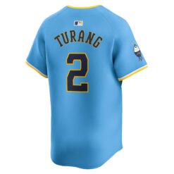 This Brice Turang Milwaukee Brewers Powder Blue City Connect Limited Jersey – All Stitched is an essential piece of gear for any Milwaukee Brewers fan looking to highlight their favorite jersey and player. The Brice Turang Milwaukee Brewers Powder Blue City Connect Limited Jersey and team details provide a kickoff-ready look that elevates your excitement for game day. Made with comfort in mind, this Milwaukee Brewers jersey delivers a standard, lightweight fit and features breathable mesh side panels for added ventilation.
