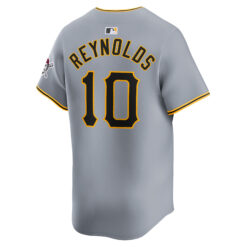 This Bryan Reynolds Pittsburgh Pirates Grey Road Limited Jersey – All Stitched is an essential piece of gear for any Pittsburgh Pirates fan looking to highlight their favorite jersey and player. The Bryan Reynolds Pittsburgh Pirates Grey Road Limited Jersey and team details provide a kickoff-ready look that elevates your excitement for game day. Made with comfort in mind, this Pittsburgh Pirates jersey delivers a standard, lightweight fit and features breathable mesh side panels for added ventilation.