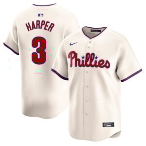 This Bryce Harper Philadelphia Phillies Cream Alternate Limited Jersey – All Stitched is an essential piece of gear for any Philadelphia Phillies fan looking to highlight their favorite jersey and player. The Bryce Harper Philadelphia Phillies Cream Alternate Limited Jersey and team details provide a kickoff-ready look that elevates your excitement for game day. Made with comfort in mind, this Philadelphia Phillies jersey delivers a standard, lightweight fit and features breathable mesh side panels for added ventilation.