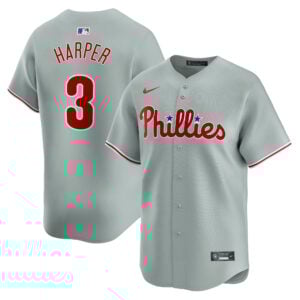 This Bryce Harper Philadelphia Phillies Grey Road Limited Jersey – All Stitched is an essential piece of gear for any Philadelphia Phillies fan looking to highlight their favorite jersey and player. The Bryce Harper Philadelphia Phillies Grey Road Limited Jersey and team details provide a kickoff-ready look that elevates your excitement for game day. Made with comfort in mind, this Philadelphia Phillies jersey delivers a standard, lightweight fit and features breathable mesh side panels for added ventilation.