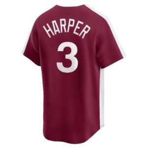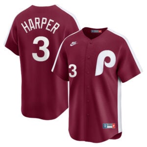 This Bryce Harper Philadelphia Phillies Red Cooperstown Limited Jersey – All Stitched is an essential piece of gear for any Philadelphia Phillies fan looking to highlight their favorite jersey and player. The Bryce Harper Philadelphia Phillies Red Cooperstown Limited Jersey and team details provide a kickoff-ready look that elevates your excitement for game day. Made with comfort in mind, this Philadelphia Phillies jersey delivers a standard, lightweight fit and features breathable mesh side panels for added ventilation.