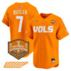 This Butler 7 Tennessee Volunteers College Baseball World Series Champions Jersey – Cream is an essential piece of gear for any custom fan looking to highlight their favorite player. The Butler Tennessee Volunteers jersey and team details provide a kickoff-ready look that elevates your excitement for game day. Made with comfort in mind, this Butler 7 jersey delivers a standard, lightweight fit and features breathable mesh side panels for added ventilation.