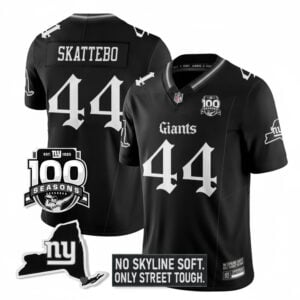 Add dramatic flair to your Giants collection with this Black Gothic Theme Limited Jersey featuring Cam Skattebo. Representing the New York Giants in a dark, stylized aesthetic, this jersey brings a bold twist to NYG tradition and New York state pride. All name, number, logo, and theme patches are stitched or embroidered for a striking, textured look. A unique piece for fans wanting something different. Oversized sizes 5XL–7XL available.